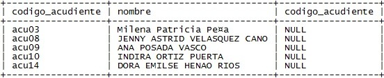 - Se va a visualizar a información de las tablas estudiantes,acudientes los siguientes campos: